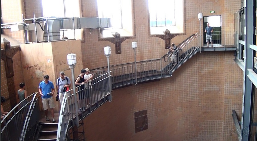 Nach dem Eingang kann man entweder mit den AufzĂĽgen nach unten fahren oder nimmt die Treppe, was schneller geht, aber fĂĽr jemanden, der Höhenangst hat, eventuell eine Herausforderung darstellt – zum GlĂĽck habe ich keine.