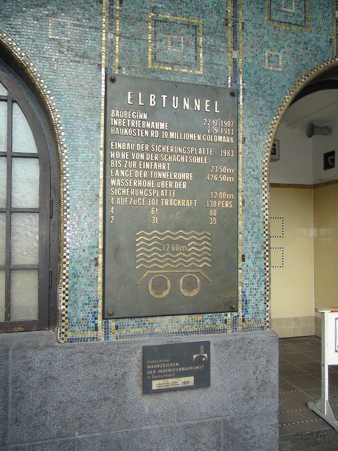 In irgendeinem Film mit Till Schweiger und Matthias Schweighöfer (es könnte sogar Keinohrhasen sein – oder war es ein anderer Film in ähnlicher Manier…?!) fahren sie mal durch den Alten Elbtunnel, den wir zu FuĂź erkundet haben. Um dort mit dem Auto durchzukommen, muss man mit dem Auto in einen Lastenaufzugfahren und gelangt so in eine Röhre, die noch tiefer unter der Elbe ist, als die, die wir drei Grazien aus dem Schwabenlande zu FuĂź genommen haben.