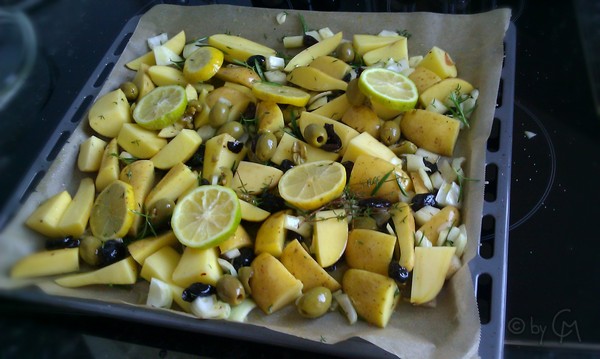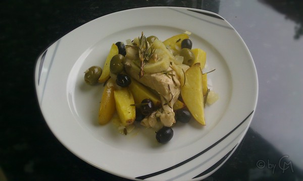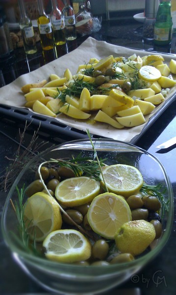 Danke an Janine – unsere kreative Experimentalköchin – für dieses tolle Gericht, das zu unser aller Liebling geworden ist: Zitronenhähnchen mit Kartoffeln und Oliven.
