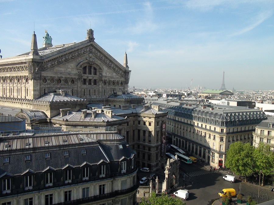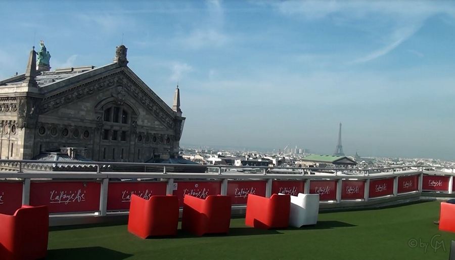 Einen wunderschönen Ausblick über die Dächer von Paris mit Sicht auf den Eiffelturm und die Opéra hat man von den Galeries Lafayette. Dieses Kaufhaus lohnt sich nicht nur wegen der Papeterie-Abteilung und des Ausblicks (über den Aufzug und dann über eine Holztreppe zu erreichen), sondern auch wegen der Innenkuppel – sie ist gläsern verkleidet und sehr schmuckhaft gestaltet.